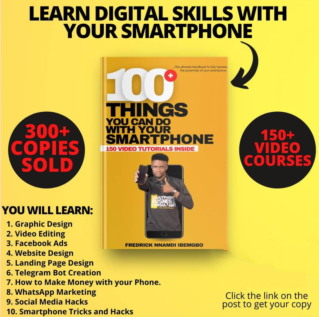 100+ THINGS YOU CAN DO WITH YOUR SMARTPHONE.Awesome book that teaches several ways to unlock the potentials of your smartphone.This is so unbelievable.I've been learning:1. Graphic Design